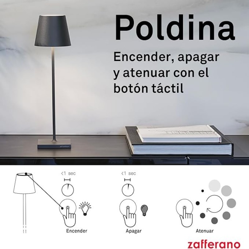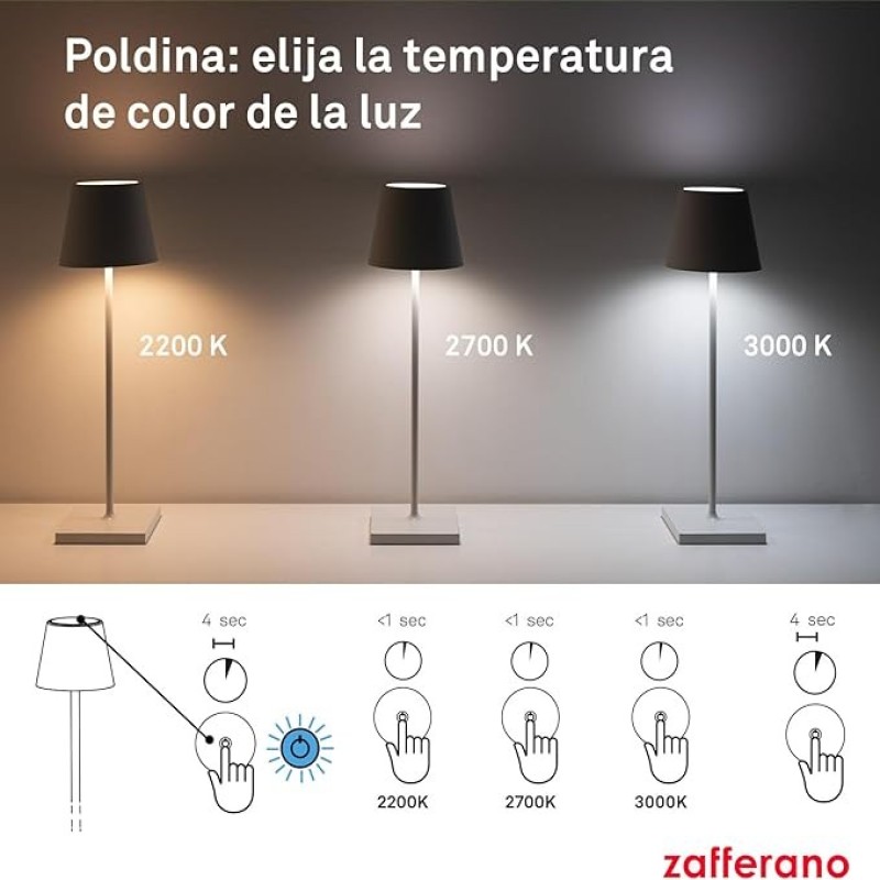 CONTROL TÁCTIL: Gracias al control táctil presente en la parte superior de la lámpara, puedes encender/apagar fácilmente la lámpara, ajustar la intensidad de la luz y seleccionar la temperatura color de la luz entre 2200 K, 2700 K y 3000 K