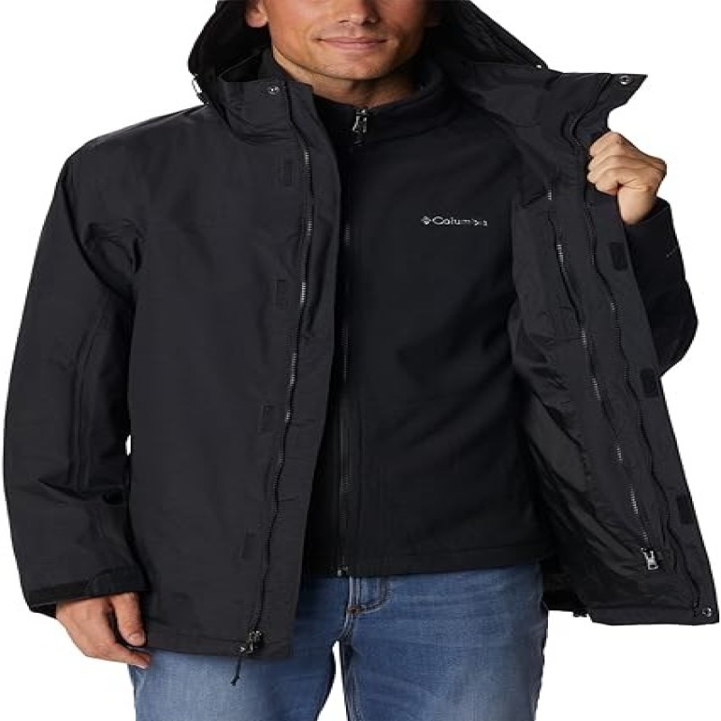 Una versátil chaqueta impermeable 3 en 1 para hombre con una capa exterior duradera y un forro aislante que se puede usar junto o como una chaqueta independiente