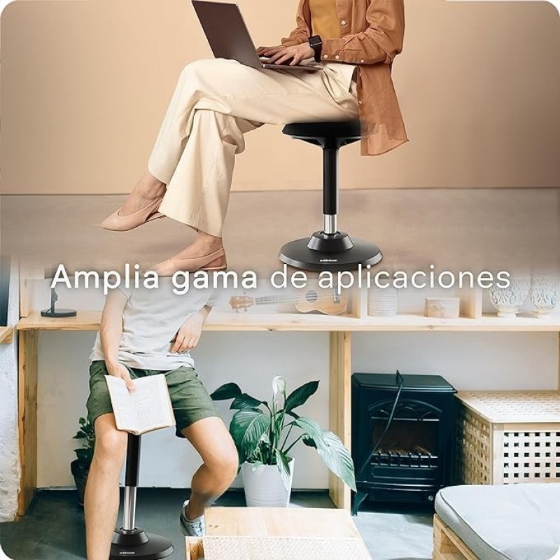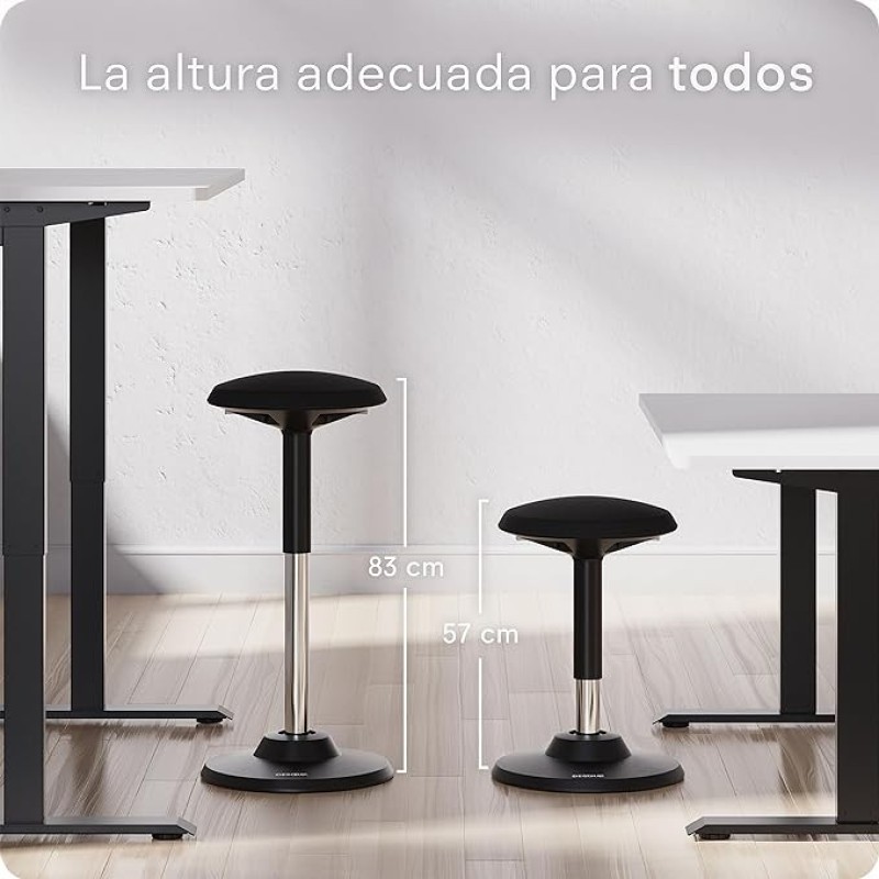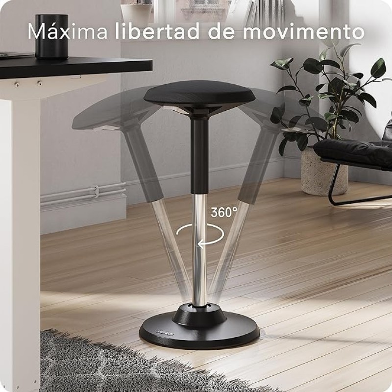 DESQUP® Motion Taburete Ergonómico | Taburete con Reposapiés Regulable en Altura | Previene el Dolor de Espalda y Cuello | Silla Sit-Stand para Oficina, Laboratorios et Casa | Garantía 5 Años