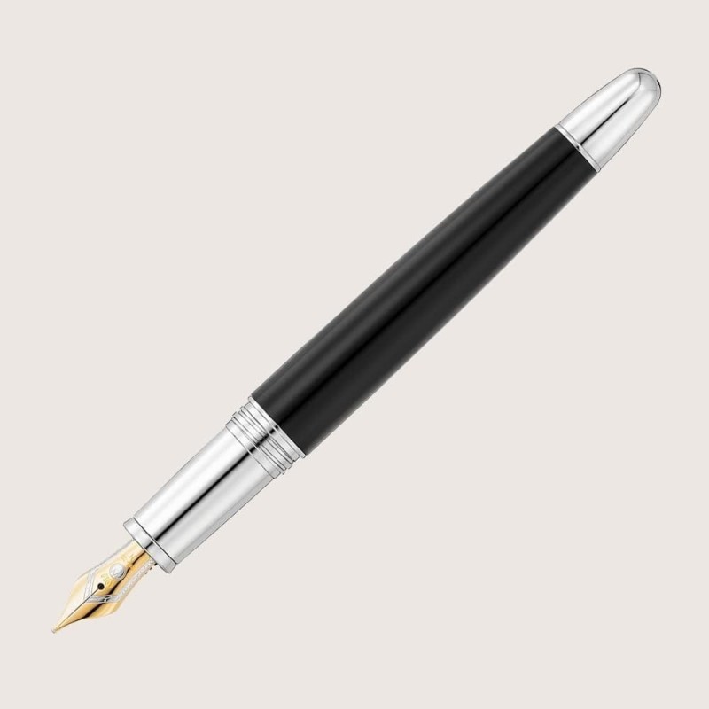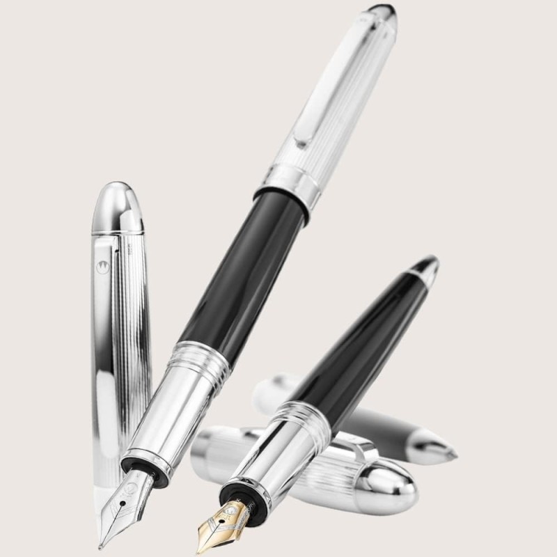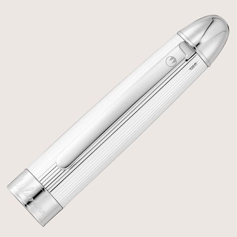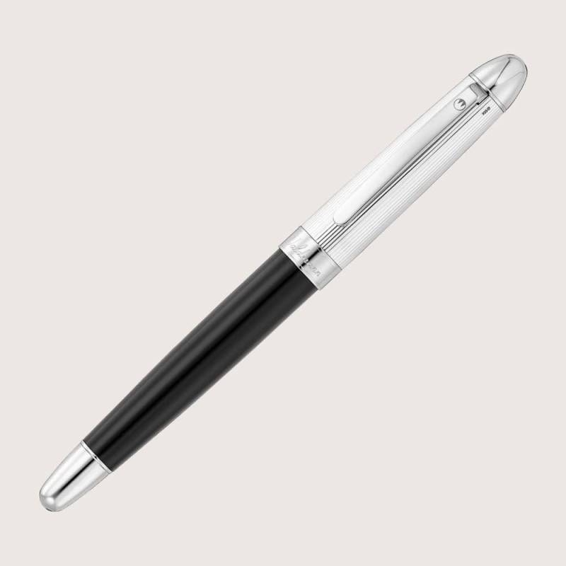 Waldmann PRECIEUX Pluma estilográfica con plumín dorado EF barniz negro plata pulido brillante con líneas decorativas, grosor de plumín a elegir extra fino (EF)