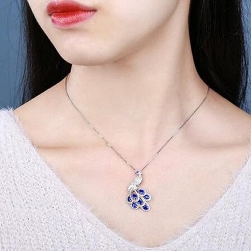 ♥ Material: Oro Blanco 18K; Peso: 4.45G; Longitud de la Cadena: 17-19CM; Tamaño de Piedra Principal: 3.9x3MM; Piedra Principal: Zafiro Laboratorio 1.9ct; Piedra Lateral: Moissanita 0.14CT