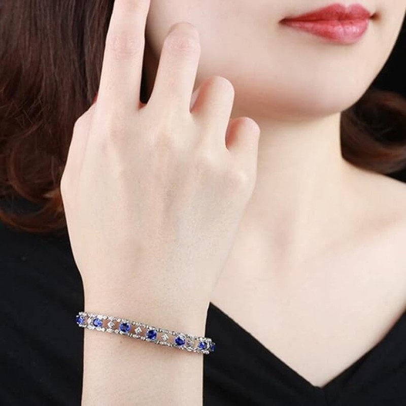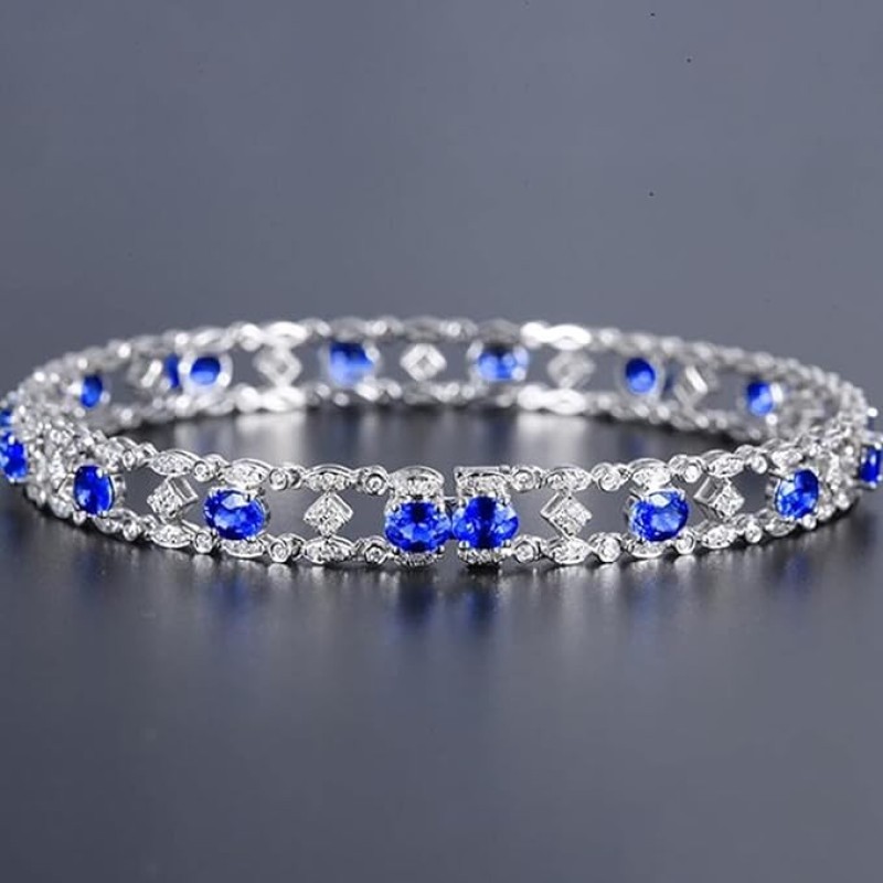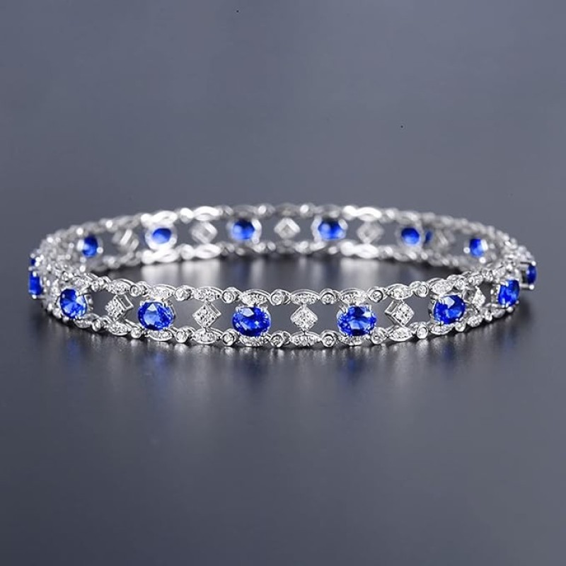 • ♥ Material: Oro Blanco 18K; Peso: 4.45G; Longitud de la Cadena: 17-19CM; Tamaño de Piedra Principal: 3.9x3MM; Piedra Principal: Zafiro Laboratorio 1.9ct; Piedra Lateral: Moissanita 0.14CT