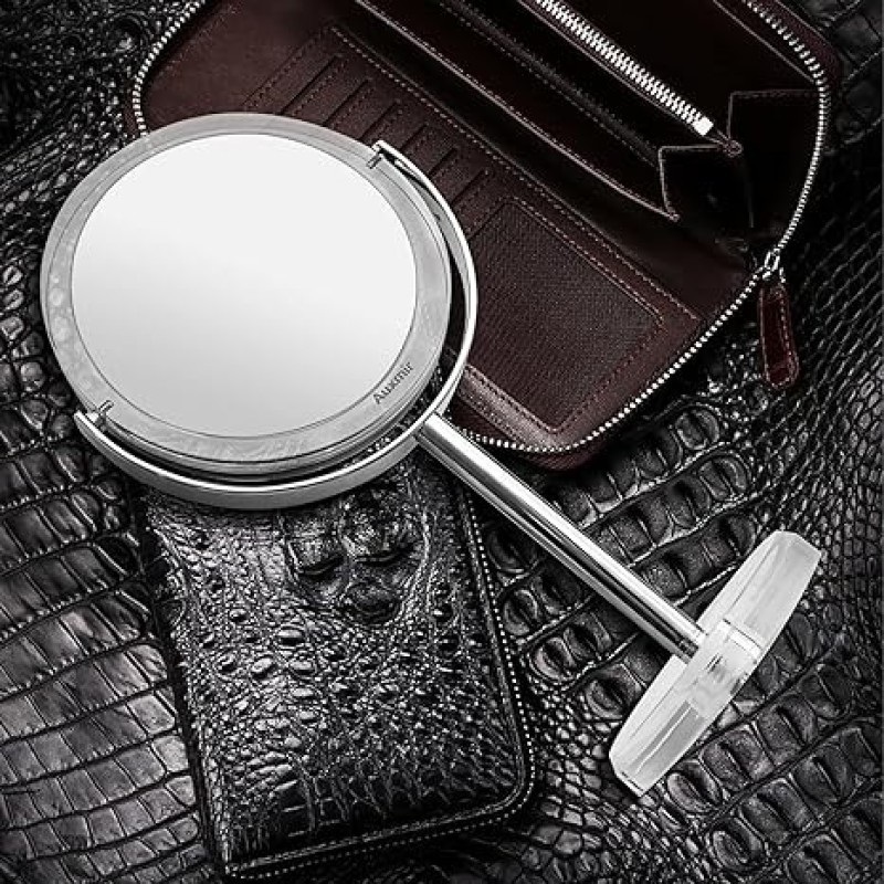 【Giratorio de 360°】El espejo aumento se puede girar 360° libremente para maquillarse, afeitarse y el cuidado facial. Se puede fijar el espejo en cualquier posición firmemente y elegir libremente entre el espejo sin aumento o con él.