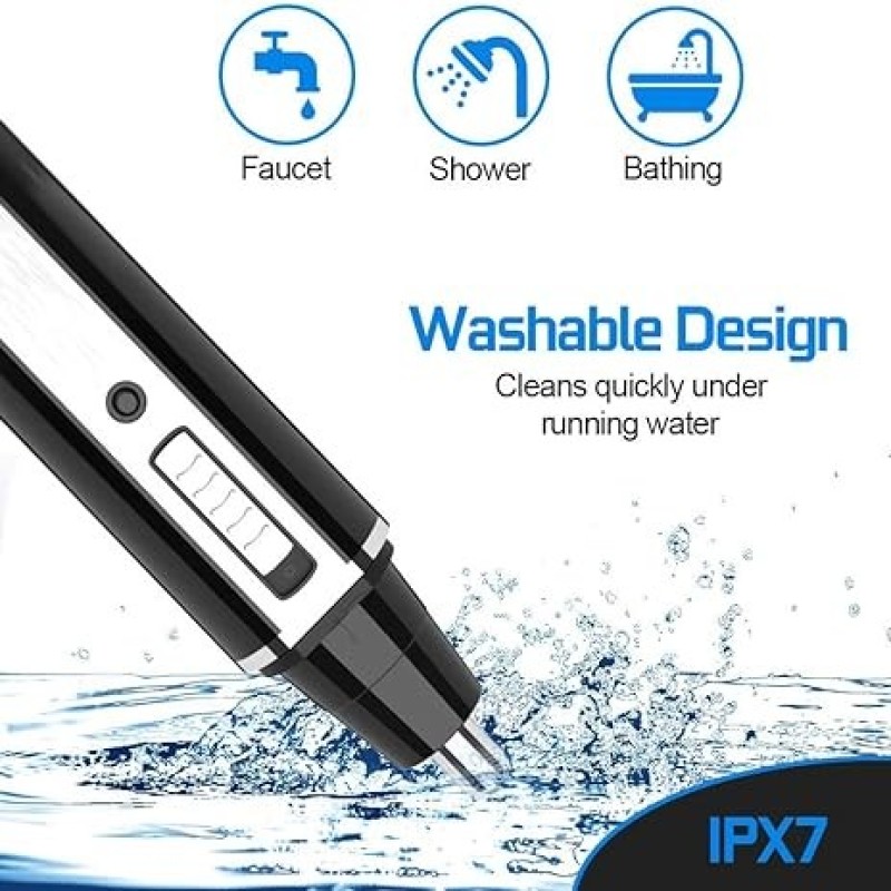 SIN DOLOR Y SEGURIDAD Y FÁCIL LIMPIEZA Recortador de pelo de nariz impermeable y lavable, trata fácilmente los residuos mediante la limpieza en remojo, incluso cuando te duchas. El cabezal de corte lavable y extraíble es conveniente para la limpieza y el mantenimiento. Este cortapelos para nariz y orejas para hombres corta de forma segura sin dolor, este cortapelos para hombres evita el riesgo de tirar del pelo o dañar la piel.