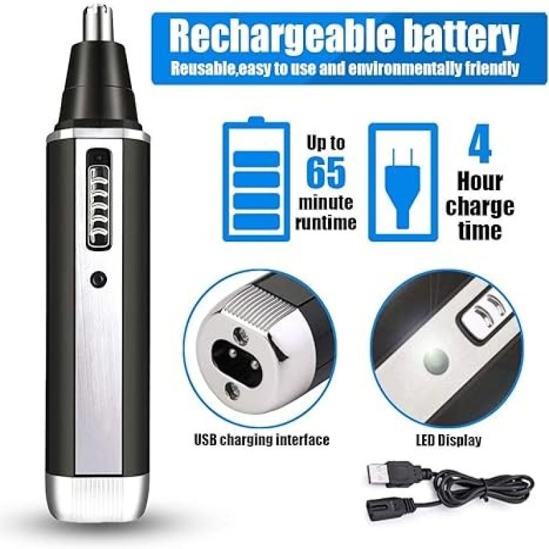 Recortadora de vello de nariz y orejas, recortadora de vello de nariz recargable USB profesional, recortadora de vello de nariz 4 en 1 sin dolor para hombres y mujeres, cuchillas de doble filo resistentes al agua para una fácil limpieza
