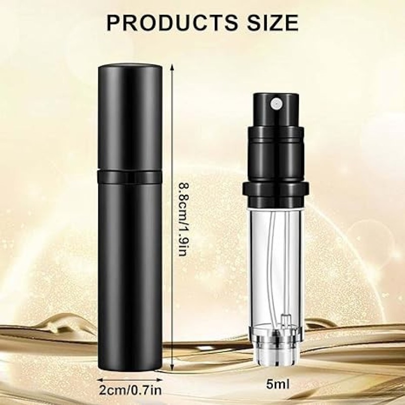 【Fácil de llevar】 El atomizador de perfume de 5 ml tiene el tamaño perfecto para almacenamiento móvil o para viajar. Práctico para llevar en el bolsillo, dejarlo en el coche, guardarlo en una mochila, una bolsa de viaje o un neceser. No lleva un montón de botellas voluminosas para viajar, apenas ocupa espacio, una buena opción para una fiesta de citas de viaje.