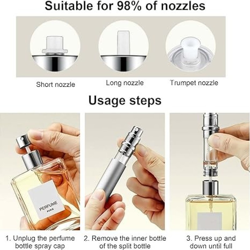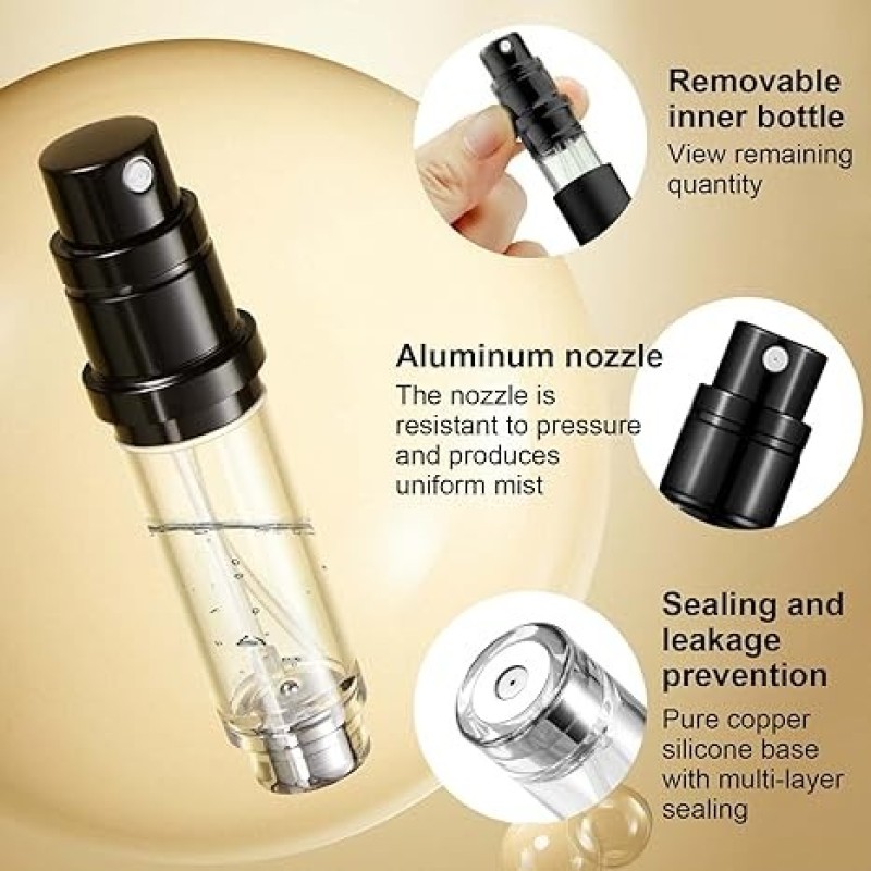 【A prueba de fugas】Nuestro frasco de perfume de viaje se puede rellenar. La parte inferior adopta una estructura precisa de fácil llenado para que no tenga fugas, no se puede descargar accidentalmente mientras está en su bolsillo, mochila, bolsillo o en cualquier lugar importante para usted